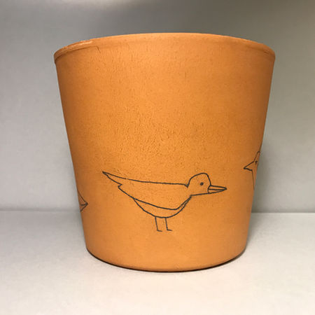terracotta pots featuring a parade of small emotional birds